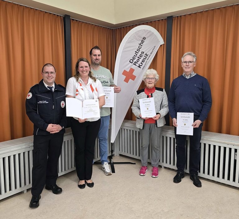 Die Ehrung wurde durch den Vorsitzenden des DRK Dr. Mathias Göbel und den Kreisbereitschaftsleiter Markus Göbel vorgenommen.